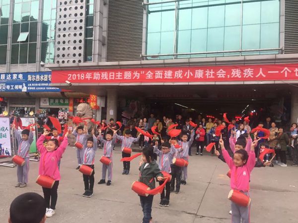 活动在同乐幼儿园幼儿的表演中开始了,舞蹈《欢庆鼓娃》为大家送上了吉祥祝福;《花儿朵朵向太阳》表达了美好心愿,愿每一个残疾孩子都能走进课堂,平等接受教育,共享美好未来;歌曲《感恩的心》让关爱的阳光照亮每一位残疾人的心灵。尽管天气有点凉,但师生的表演吸引了不少市民观看,小朋友们精彩的表演赢得了观众的阵阵掌声。表演结束后,志愿者们志愿了服务活动,为大家免费提供体检、心理咨询、修鞋织补、理发。同时向周围群众宣传残疾人相关法律、法规,发放宣传资料。