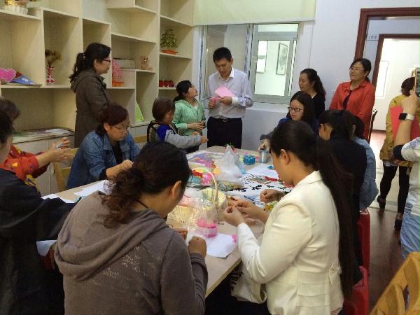 6月3日下午,江苏省残疾人就业管理中心副主任徐卫明一行3人在泰州市残联教就部主任陈福宝、泰州市残疾人就业服务中心主任蔡俊雅的陪同下,现场视察海陵区城西街道兴业社区雅慧手工坊的运行情况。在该手工坊内,十多名残疾人围桌而坐,在老师的指导下个个专心致志地按照图纸的要求串珠。墙边的展示柜上是已完工的琳琅满目的手工艺制品。江苏省残疾人就业管理中心诸位领导均对她们的灵巧手工竖起了大拇指。